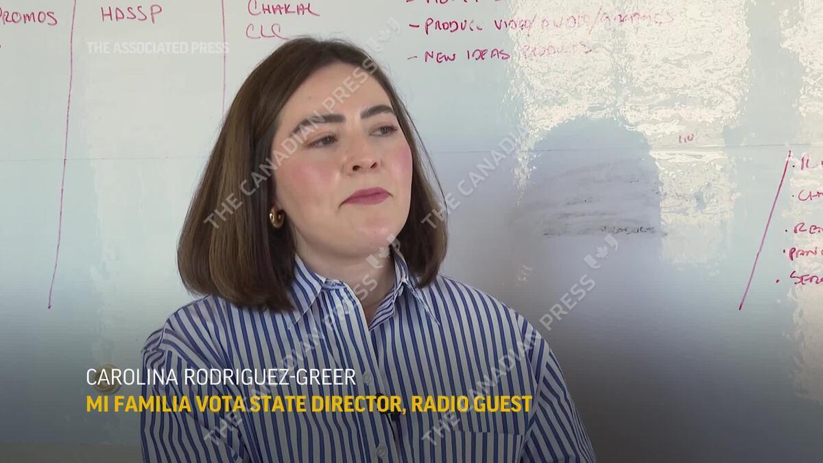La Campesina, a Spanish-language radio network in Arizona, California and Nevada, gears up on the fight against misinformation and disinformation targeting Spanish speakers about elections. (AP Video/Serkan Gurbuz)