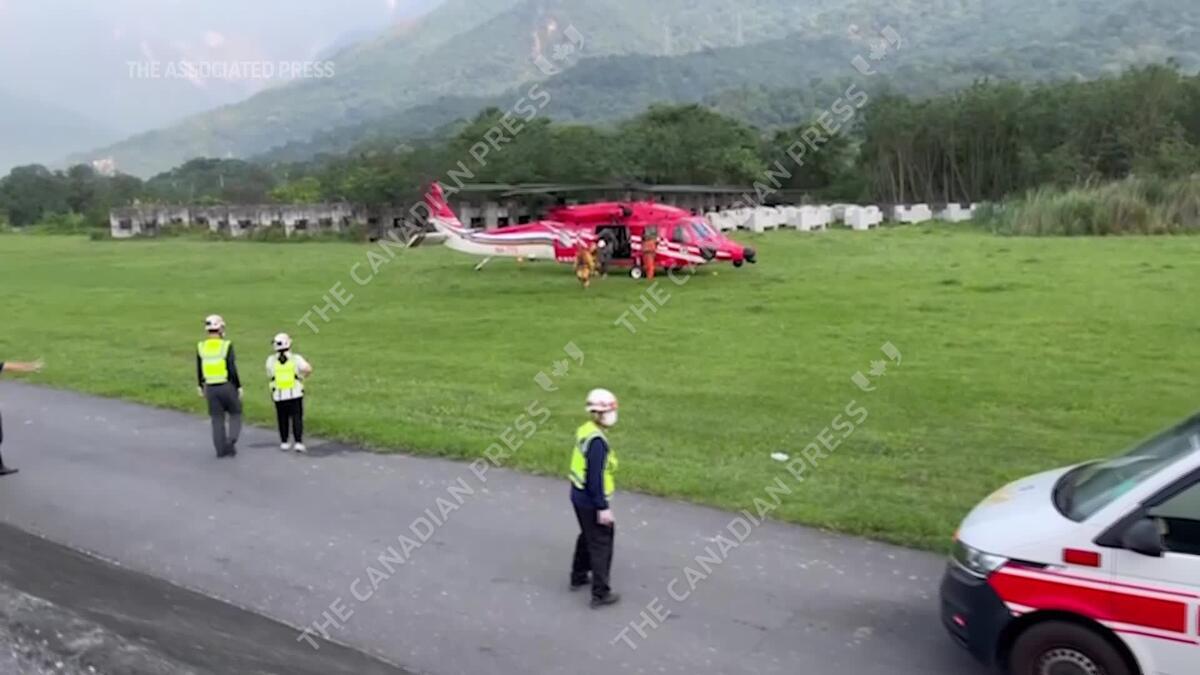 CP170379950 | Rescue helicopter airlifts quarry worker in Taiwan after quake