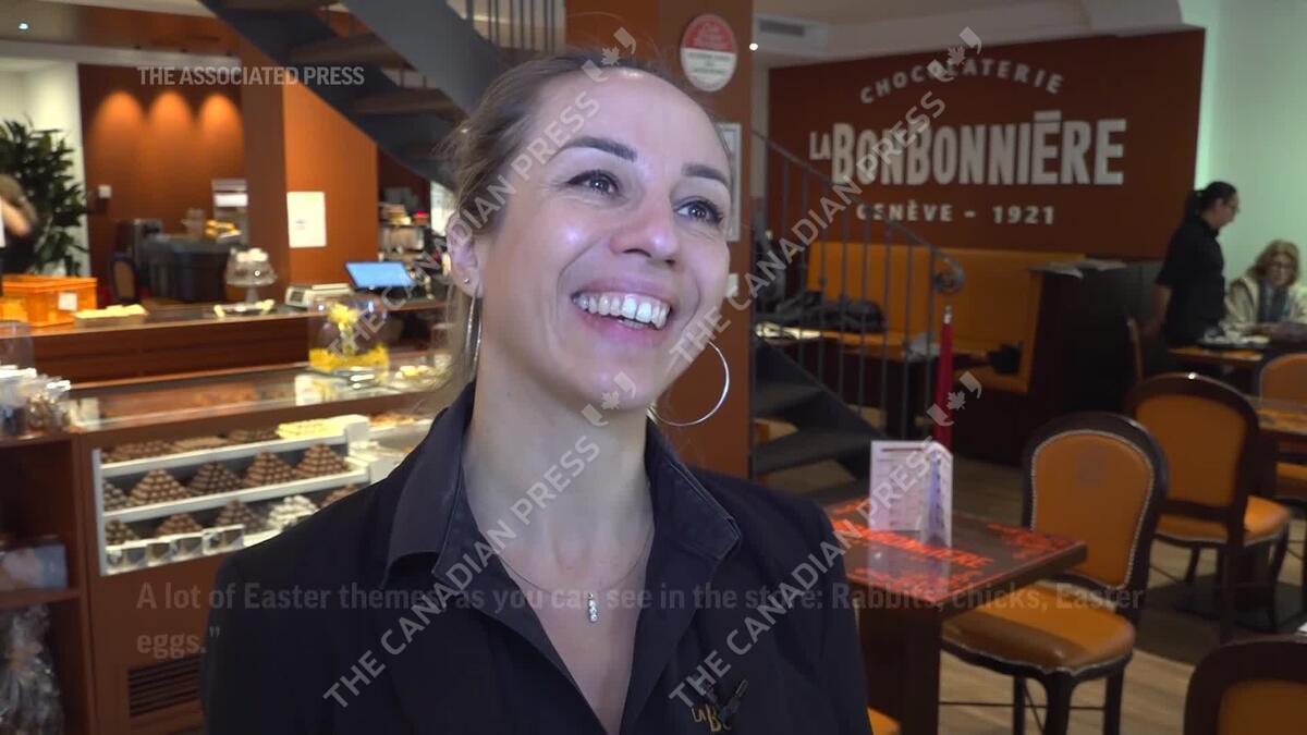 Switzerland's famed chocolatiers are gearing up for the finale of the crucial Easter season with sculptured sweets like chocolate bunnies, chicks and eggs at a time of rising cocoa prices. AP Video shot by Jamey Keaten