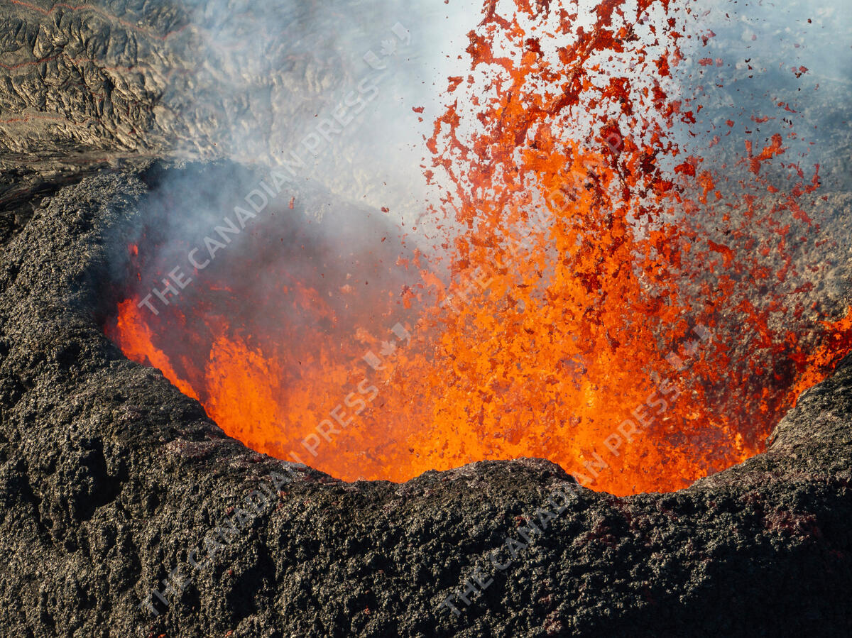 Lava erupt near the town of Grindavik, Iceland, Thursday, March 28, 2024. (AP Photo/Marco di Marco)