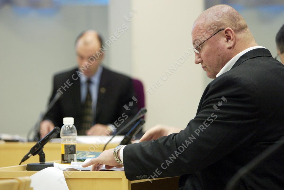 20040115 - HELSINKI - HALME: Kansanedustaja Tony Halmeelle luettiin syytteet kuudesta eri rikoksesta Helsingin käräjäoikeudessa. Kuvassa syyttäjä Ari-Pekka Koivisto ja Tony Halme.