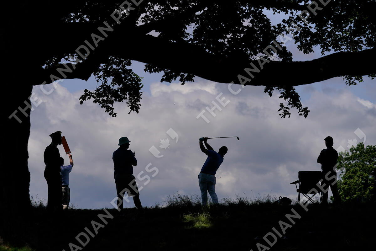 Patrick Reed hits on the sixth hole during a practice round for the U.S. Open golf tournament at The Country Club, Wednesday, June 15, 2022, in Brookline, Mass. (AP Photo/Robert F. Bukaty)
