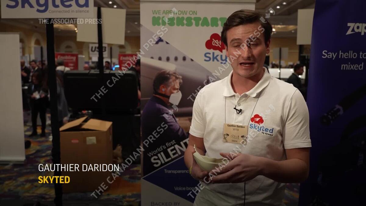 Struggling to find a private space for an important call? Startup Skyted may have the answer. Its new “silent mask” uses aerospace technology to absorb sound, providing silent and confidential calls. (Jan. 10) (AP video: James Brooks, Carrie Antlfinger)