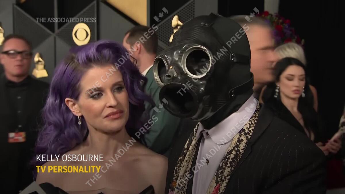 Slipknot's Sid Wilson and Kelly Osbourne hit the red carpet for the 66th annual Grammy Awards. Slipknot is nominated for metal performance of "Hive Mind." (Feb. 4)