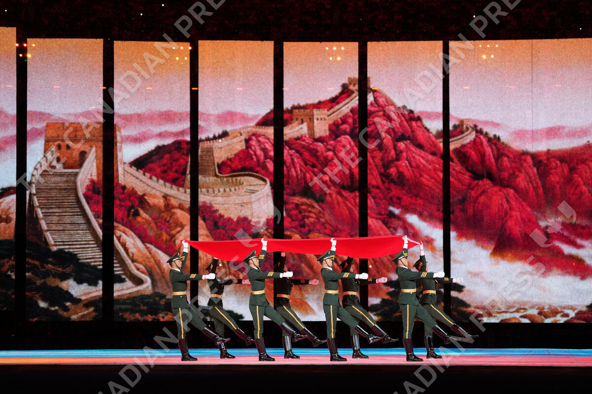 Chinese honor guard carry the Chinese flag during the opening ceremony of the 19th Asian Games in Hangzhou, China, Saturday, Sept. 23, 2023. (AP Photo/Lee Jin-man)