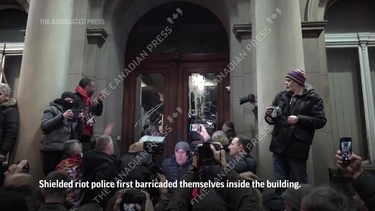 CP169750104 | Election Protesters in Serbia's capital city threaten to storm city hall